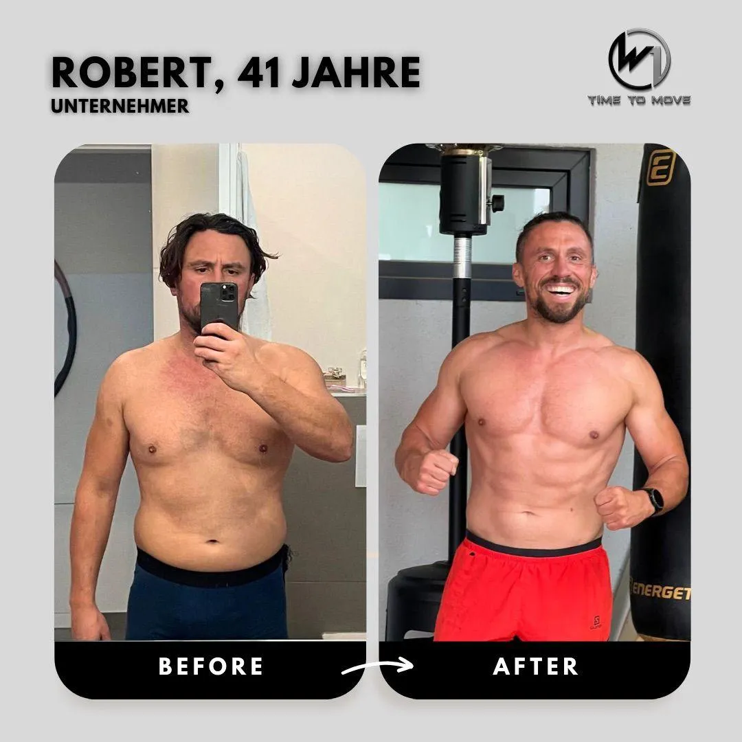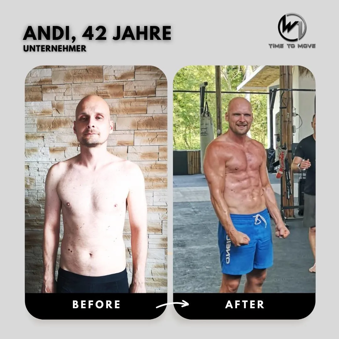 Deine Fortschritte werden regelmäßig anhand von Vorher-/Nachher-Fotos, Wiegeergebnissen und Analysen der Körperzusammensetzung (Fettanteil, Muskelanteil) verfolgt, um Dich auf Kurs zu halten.